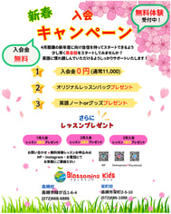 春のキャンペーンのお知らせです!新年度に向け英会話をスタートしませんか?講師・スタッフ一同しっかりサポート致します!ご興味ございましたらお気軽にお問い合わせくださいませ!
