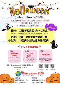 ハロウィンイベントのお知らせです。外部生の方、内部生のご兄弟もご参加いただけます(^^♪ご興味ございましたらHP・Instagram・お電話にてお気軽にお問い合わせください!