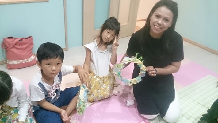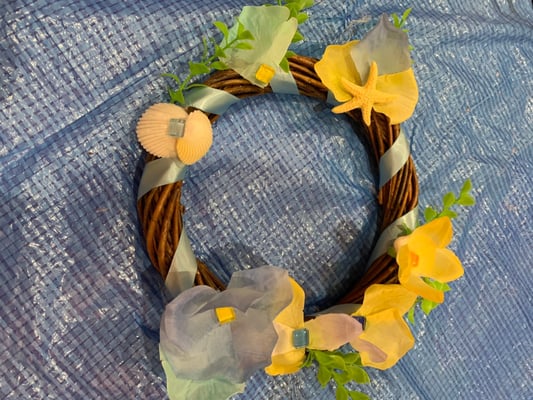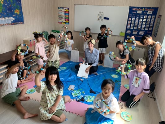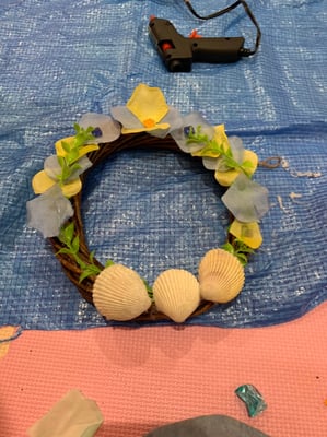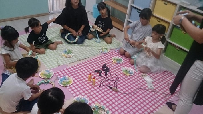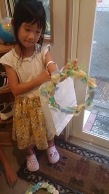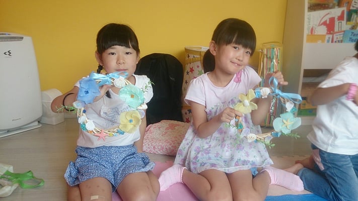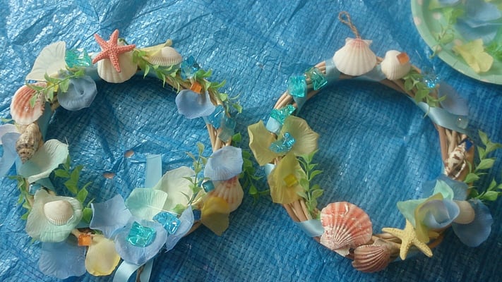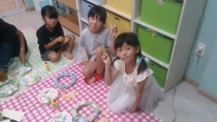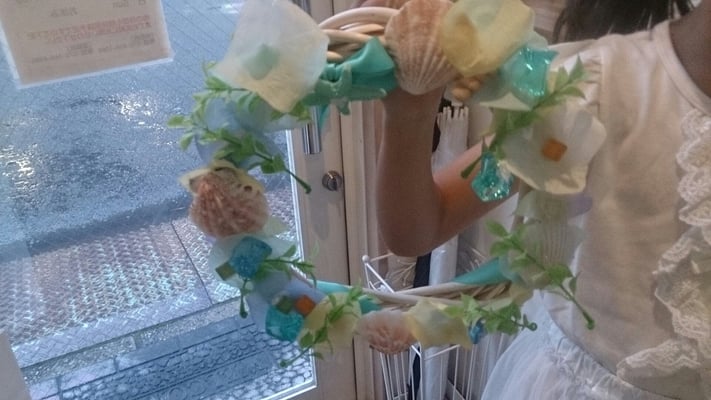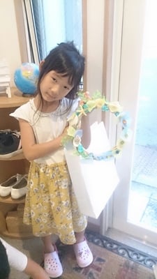 子ども達一人ひとりとても個性的でかわいいおしゃれなリースが出来ました。将来デザイナーになりたいという子は、デザインがとても繊細で驚きました。また、あえて飾りは全部つけないで貝殻だけつける子や、全部使って豪華なリースにする子、お花だけつける子🌸どれも素敵なオリジナルサマーリースです!