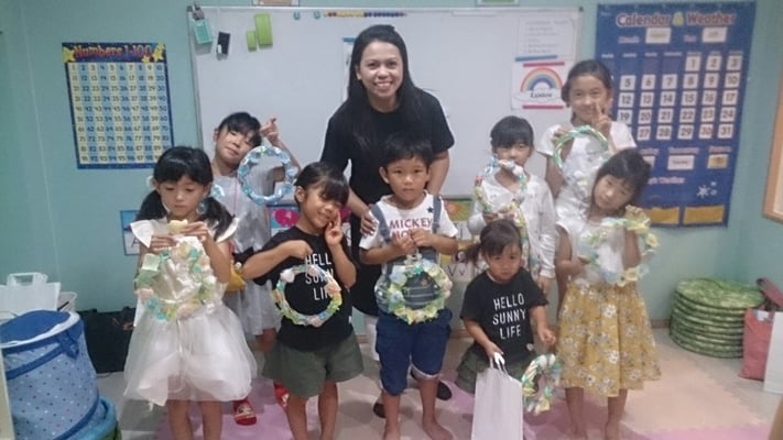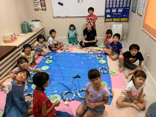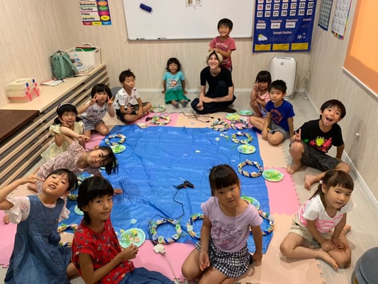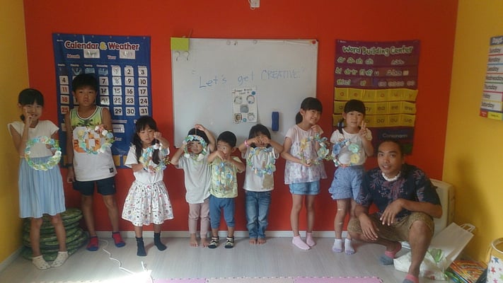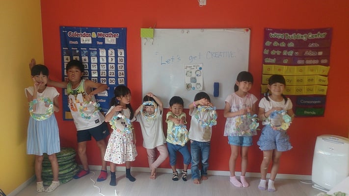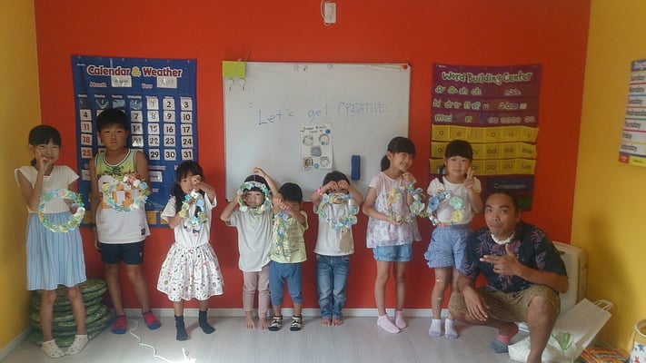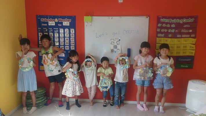 作っている間は英語で先生とお話をしたり、夏にちなんだ単語を英語で学んだり、、、楽しい時間はあっという間です。