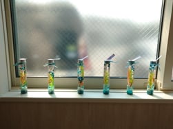 一生懸命ビンにお花を詰めていきます。