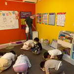 壁の方を見て待っているクラスもありましたね!