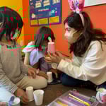 耳を貼ったりウサギさんのお顔を描いたり、クレヨンで色を塗ったりしました!