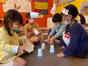 まずは先生がタマゴを隠します。その間みんなは目を閉じて待ちます・・・。